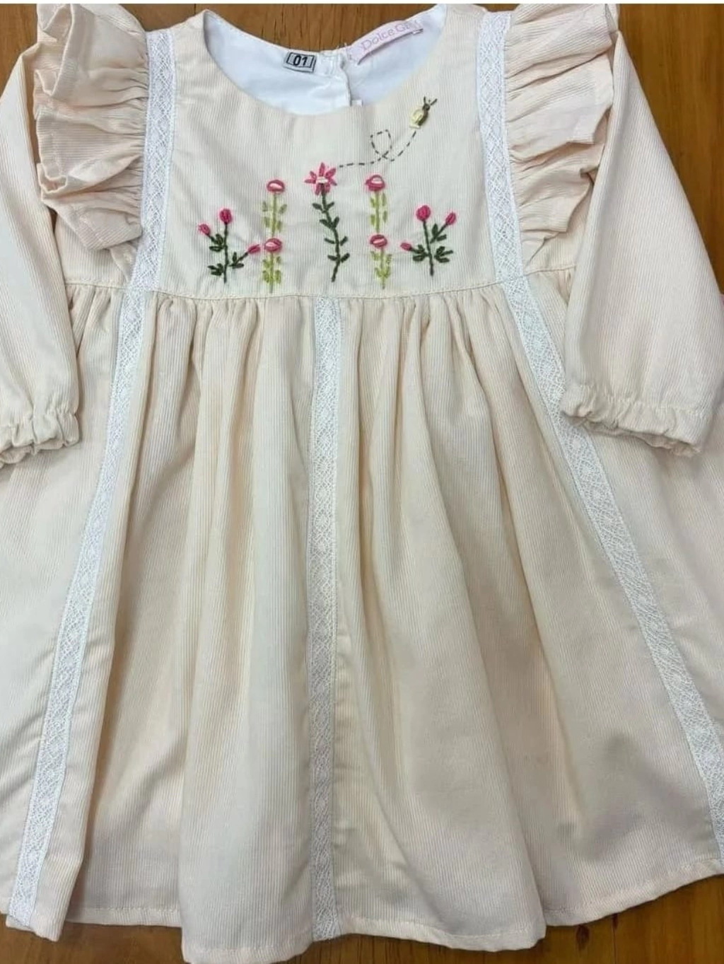 Vestido Ibiza Creme, manga longa, em fustão 100% algodão e bordado à mão, estilo boho chic.